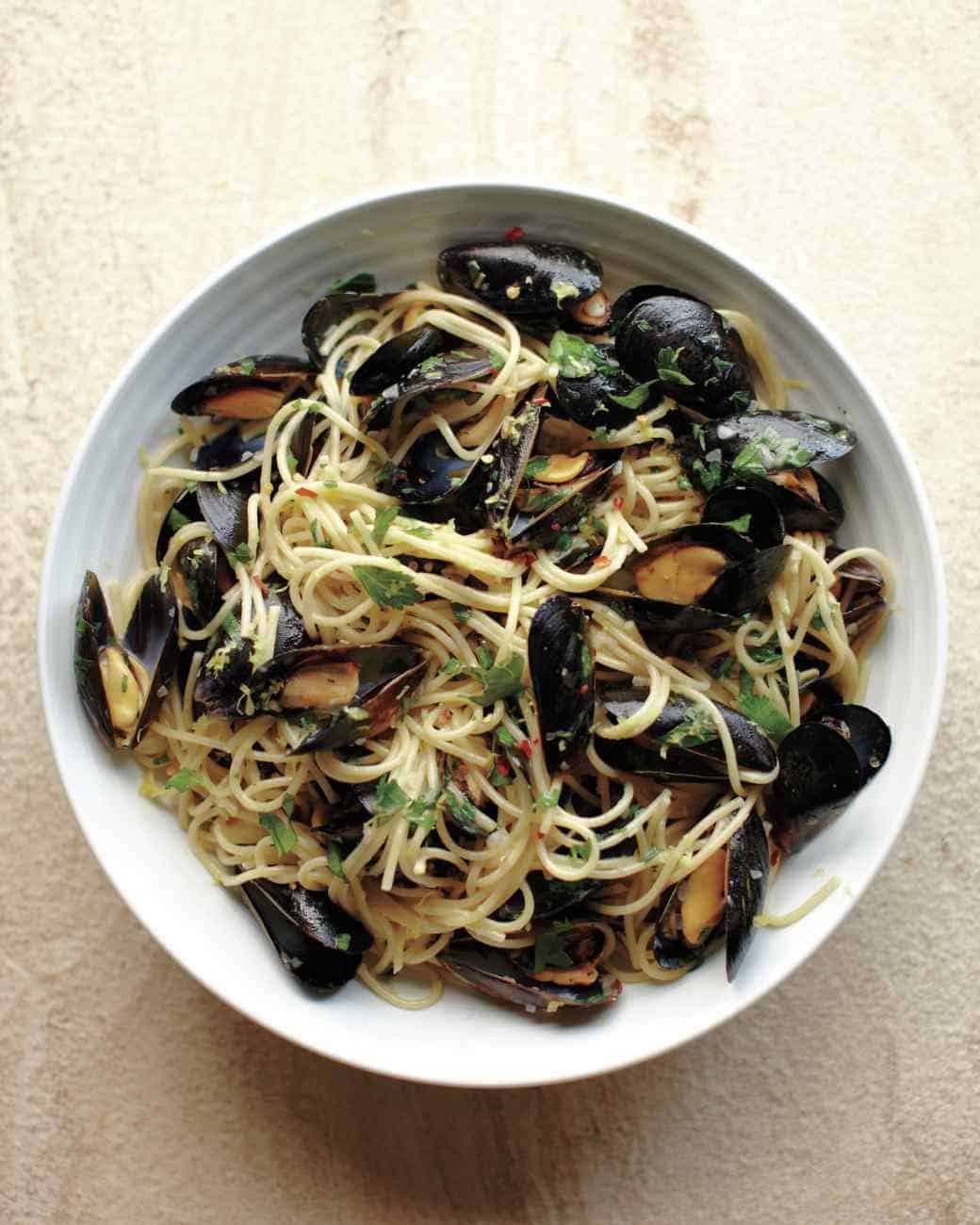 Author: Martha Stewart http://www.marthastewart.com/921631/spaghetti-mussels-lemon-and-shallots